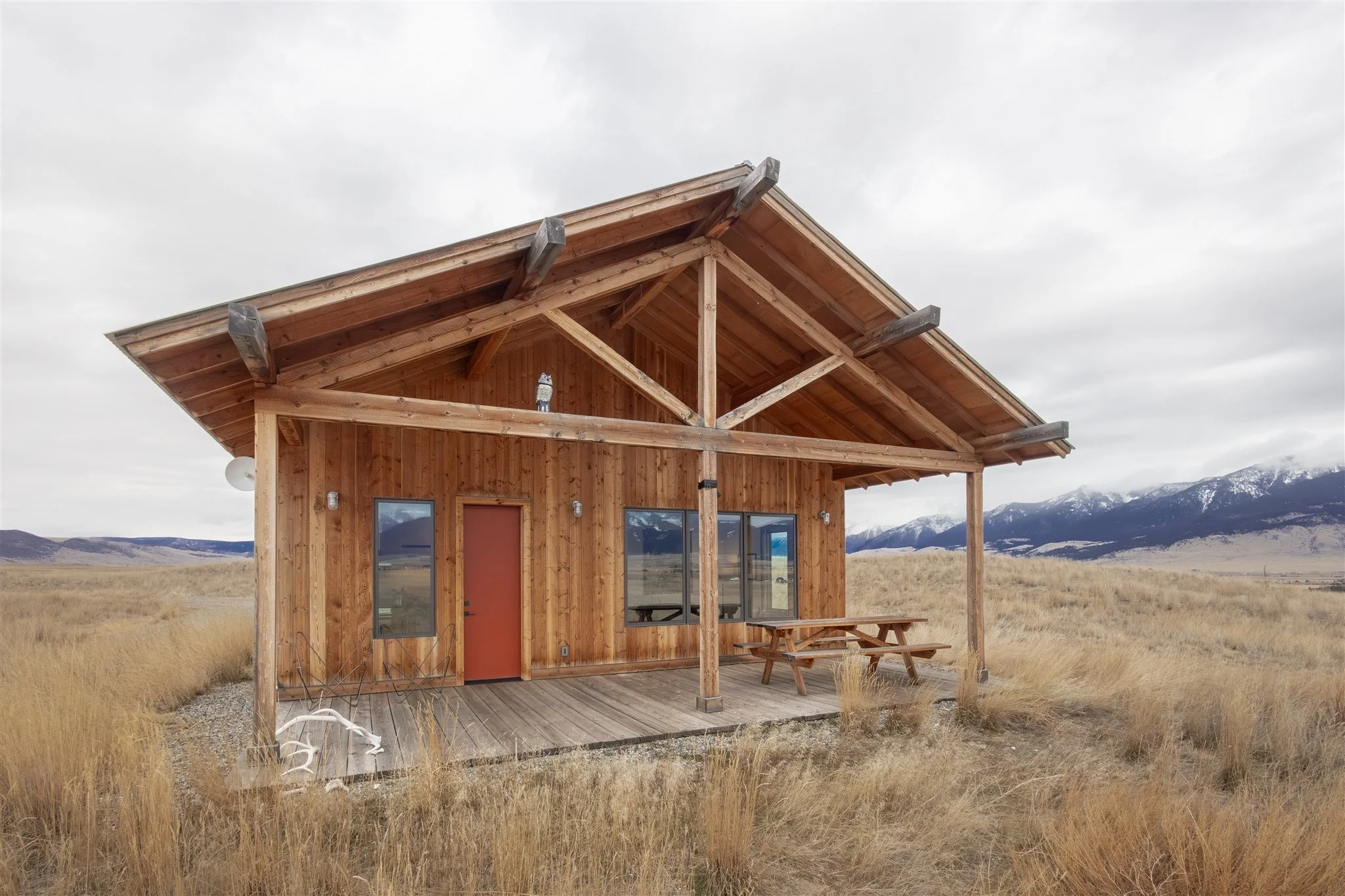 Set on 41 acres at the end of a quiet 1-mile road, this stylish 1-bedroom, 1-bath cabin offers sweeping views of the Absaroka Mountains and uninterrupted privacy.